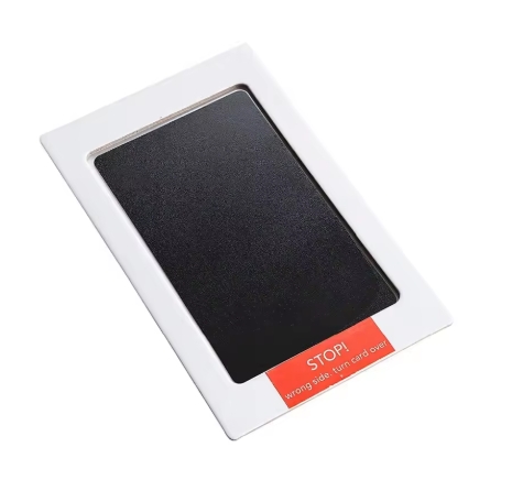 Platzieren Sie das Clean-Touch-Stempelkissen auf einer ebenen Fläche und legen Sie die Druckkarte darunter.